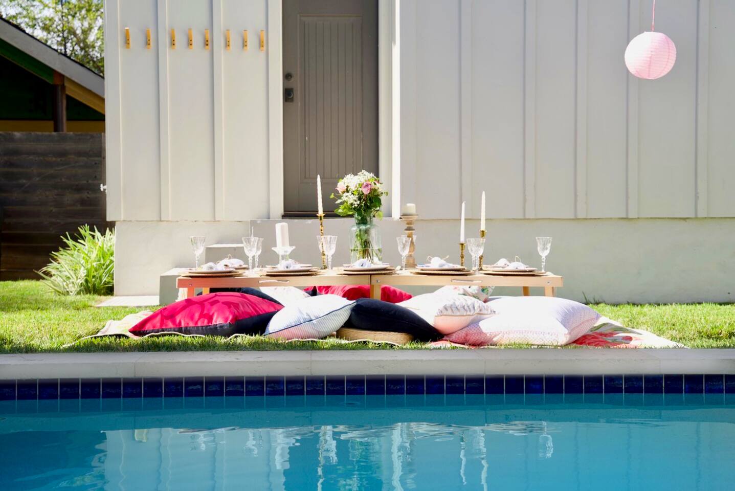 You found it! This is THE SPOT where you and your fellow travelers want to stay. Your stay in Austin will be perfect with this gorgeous home. All reservations INCLUDE both houses on the estate and private pool. The front one-story main house has three bedrooms (two king bedrooms, and a bunk room with four XL twin beds and two regular twins) and three and a half baths (each bedroom has an en-suite bath). This home accommodates 10 people max per city code. The back two-story house has two bedrooms (two queen) and two full baths. This home accommodates 6 people max per city code. All of the mattresses are memory-foam and are lavished with cozy sheets and down and/or down-alternative pillows. The living room in the main house has a 65" flat screen TV, the comfiest couch you've ever sunk into, and three sets of patio doors looking out onto the pool. The chef's kitchen is a dream for anyone who loves (or likes) to cook. It has all the amenities one could ask for like a 48" Monogram range with a double oven and griddle, a Sub Zero refrigerator, a wine fridge, a pullout drawer microwave, blender, and coffee maker. It is stocked full of quality accessories from brand new pots and pans all the way to a lemon zester and a meat thermometer. The back house has its own full kitchen to boast about, loaded with all the amenities and high-end appliances like Sub Zero refrigerator and freezer drawers. It also has it's own full-size washer and dryer and a 55' flat screen TV on the first floor. The two bedrooms are upstairs, with the master (and en-suite bathroom) overlooking the backyard and pool. The LOCATION is PERFECT. We are walkable to downtown and an eighth of a mile to Rainey St and the Austin Convention Center. We are also just a few blocks from the lake, so it's super easy to grab your running shoes or a B-Cycle and hop on the ten-mile hike and bike trail which loops around the core of the city. There are a ton of amazing restaurants nearby and our favorite high-end, The Quality Grocery store is right down the street. Only a fifteen-minute ride from the airport, you'll be in our amazingly beautiful, tree-canopied neighborhood in no time! BOHO PICNIC ADD ON! 2.5 Hours @ $475 for up to 10 guests (additional guests $25 per person). Boho Picnic Includes: Boho Rug Custom Boho Picnic Table Pillows Table Runner Chargers Plates Napkins Flatware Goblets Candles Centerpiece (real flowers) Marshall’s Portable Speaker Galvanized Beverage Tub and Stand Umbrella (available upon request) Set up & Clean Up **The BoHo setup does not include food or beverages** We have personal chef recommendations if you like. Heated pool can be included with an additional fee, typically you might only need this if booking late November to March but it is available anytime. Heated Pool Option $375 for 2 to 3 day stays. There is a $125 per day fee for additional nights, must include the entire stay. 90 degrees max temp. *Not considered short-term rental* Any booking on high demand times are non-refundable these include Austin City Limits, F1, SxSw, Christmas, New Years, and Thanksgiving. F1, Austin City Limits, and SxSw must include Friday and Saturday for any booking over these event dates. SxSw this may also require a minimum of 5 nights for these dates regardless of calendar settings. We highly encourage travels insurance when booking to make sure you can enjoy your trip without worry. You can purchase through Airbnb or we will send you a link after booking to evaluate options. If you don't have a car, I'd recommend using Lyft or UberX to get around, you can get to most places in downtown Austin for $5-10. You'll love the East Austin location. Thanks for hanging in there for the description. Here's what you really need to know. This is an amazing property that has hosted thousands of guests with near flawless reviews. Come for a visit so we can say... Welcome to Texas, Y'all!!!