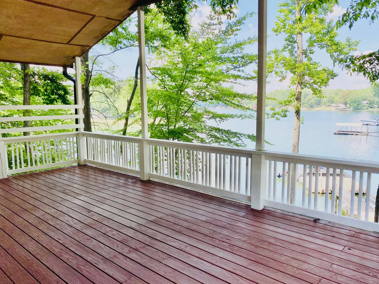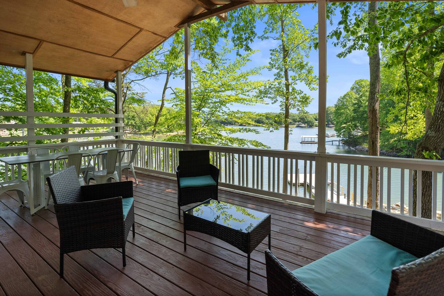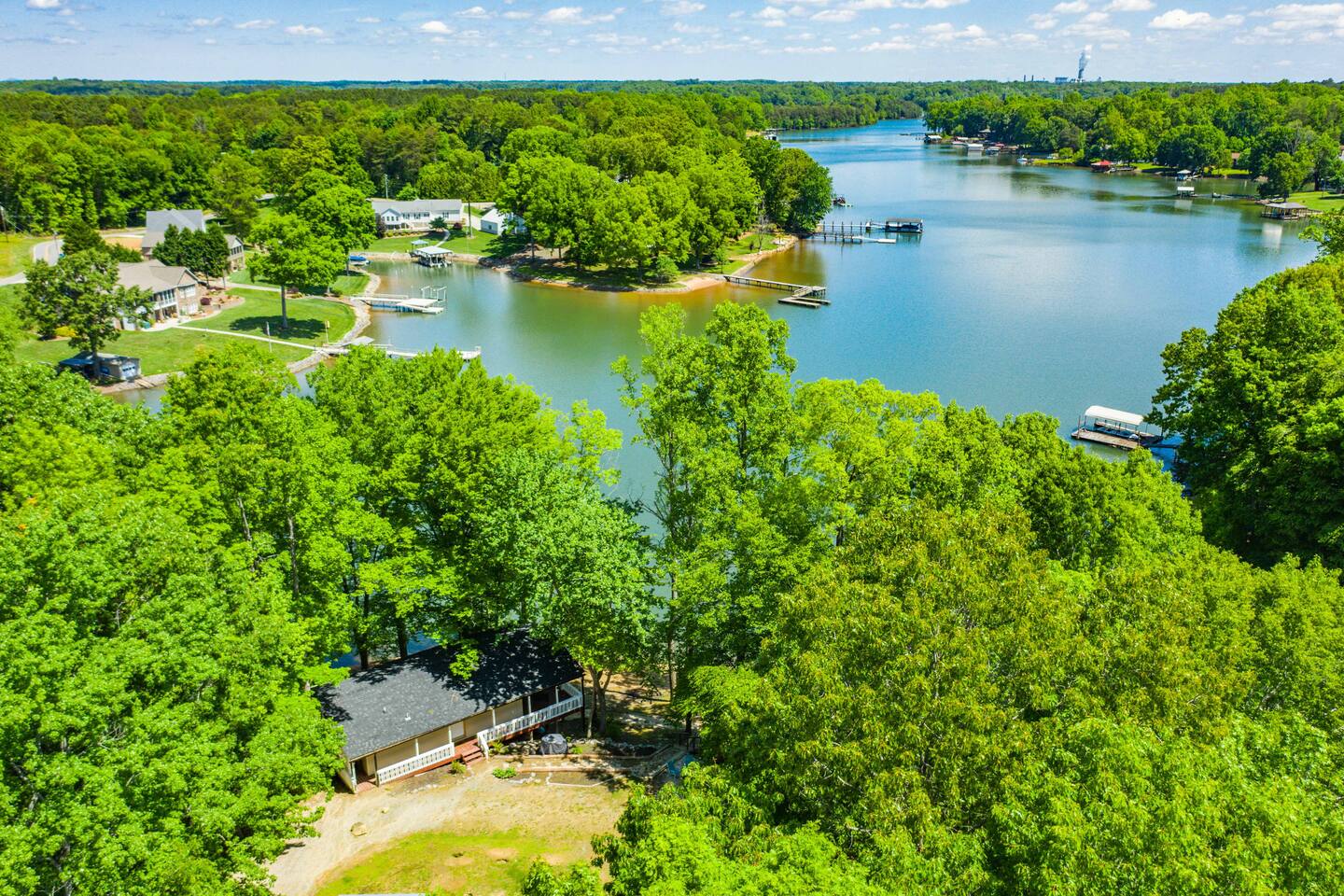 Water surrounds you on this picturesque peninsula. Enjoy an expansive deck overlooking your private boat dock 2 Bedrooms 1 Bathroom Bedroom 1 (Queen Bed) Bedroom 2 (Queen over Queen bunkbed) Shared Spaces 1 Queen double tall self-inflating air mattress Full Kitchen Granite Countertops Stainless Appliances Full Bathroom with step-in shower This is where you want to be on Lake Norman. Queen's Landing The Landing Restaurant 10 mins to Costco 30 mins to Downtown Charlotte