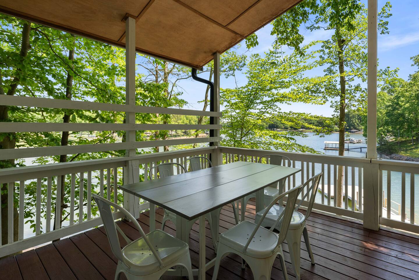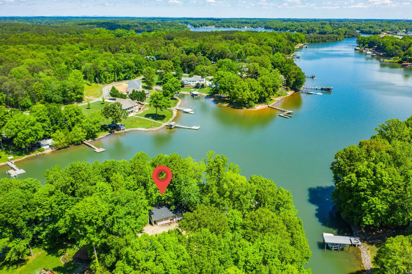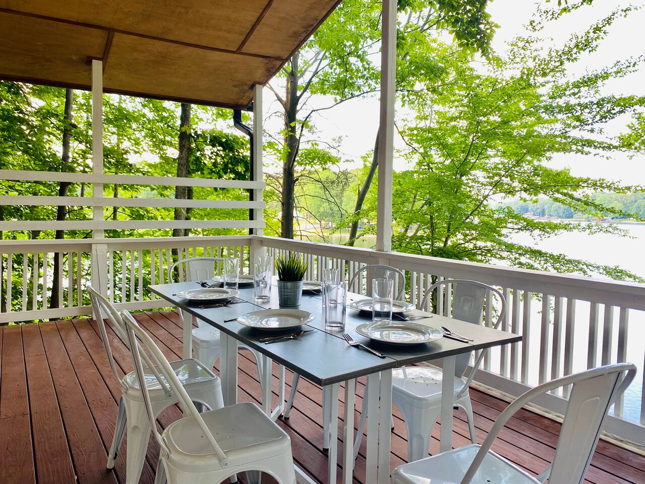Water surrounds you on this picturesque peninsula. Enjoy an expansive deck overlooking your private boat dock 2 Bedrooms 1 Bathroom Bedroom 1 (Queen Bed) Bedroom 2 (Queen over Queen bunkbed) Shared Spaces 1 Queen double tall self-inflating air mattress Full Kitchen Granite Countertops Stainless Appliances Full Bathroom with step-in shower This is where you want to be on Lake Norman. Queen's Landing The Landing Restaurant 10 mins to Costco 30 mins to Downtown Charlotte