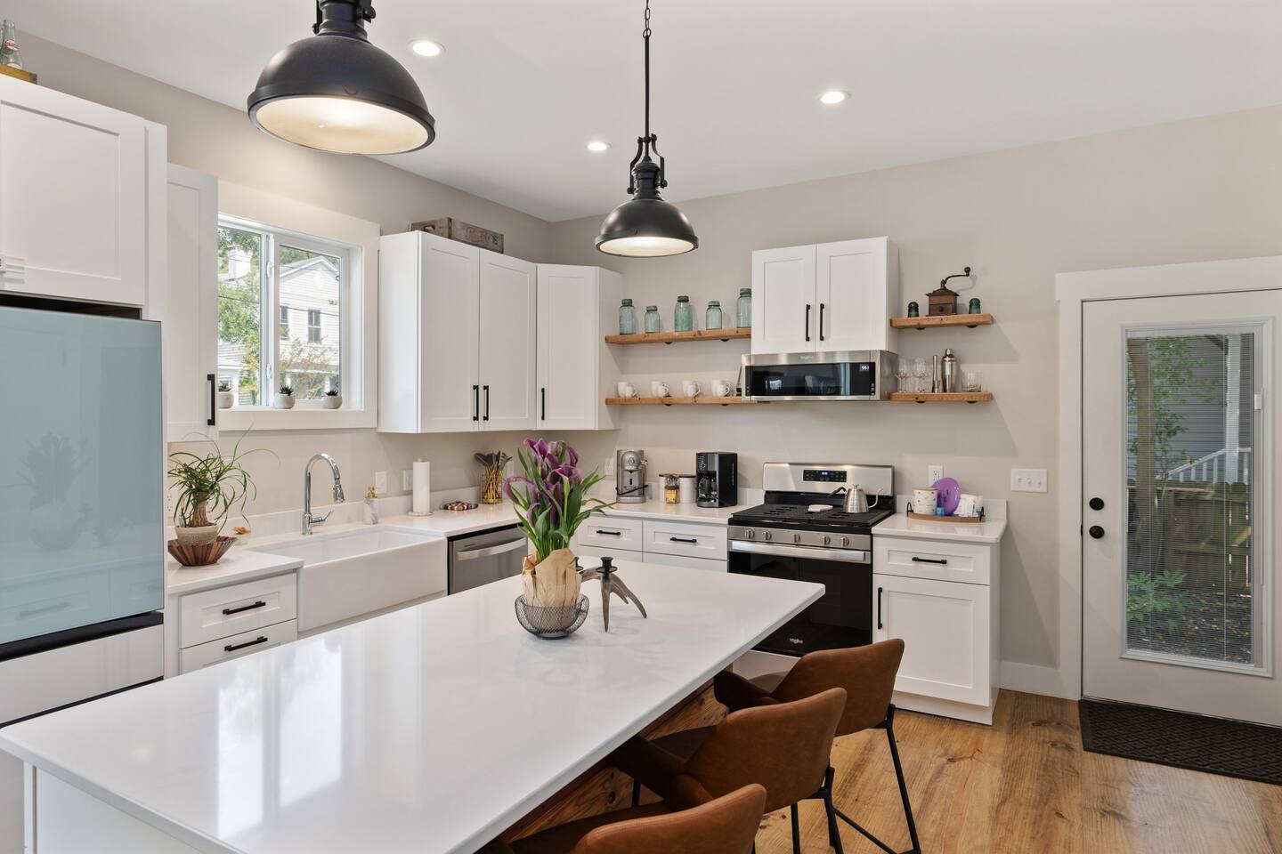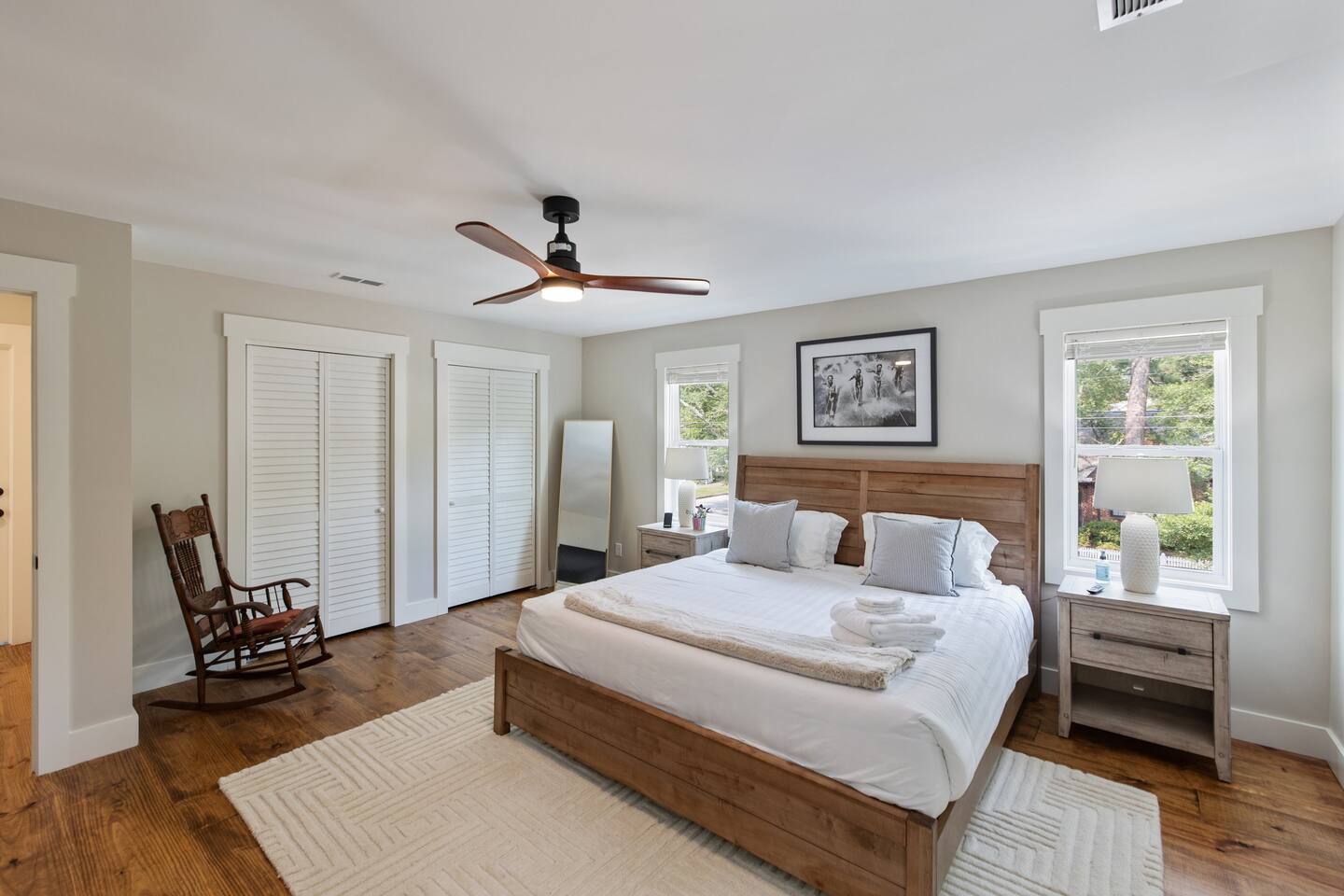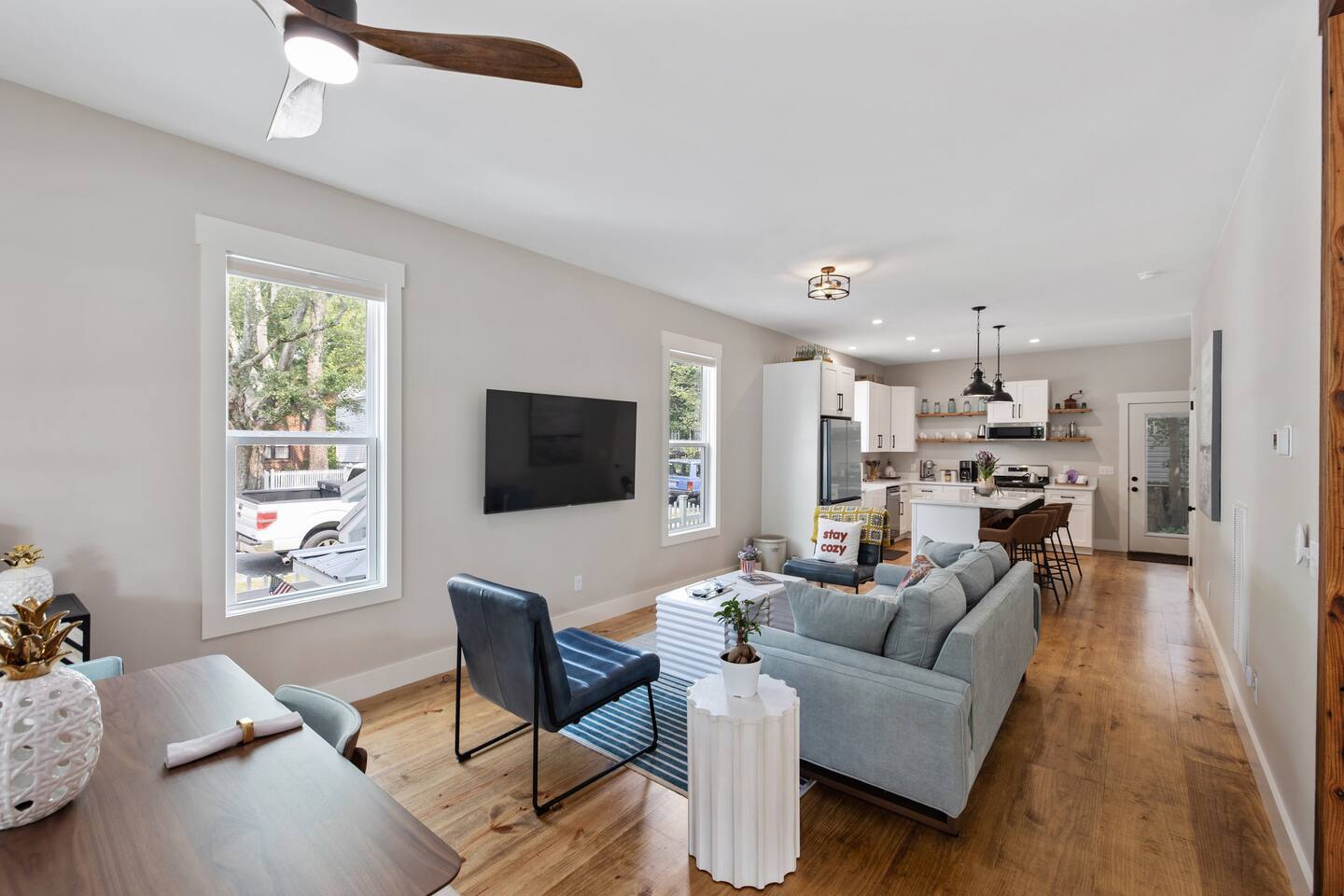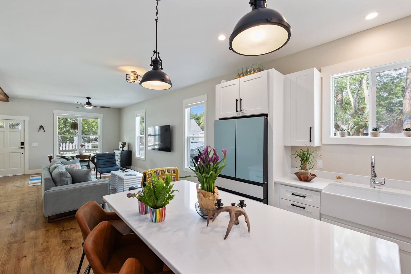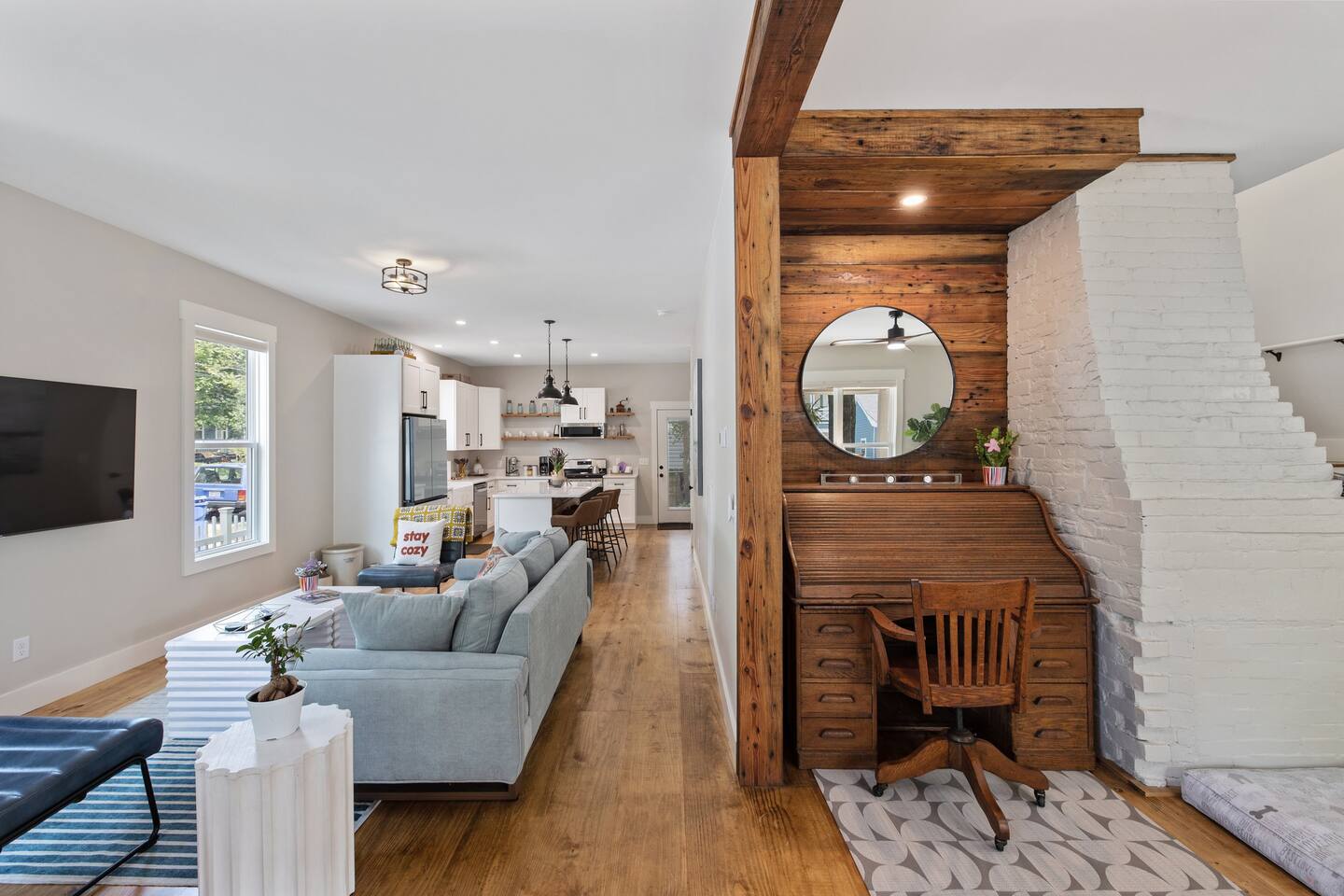 Stay in the heart of it all. This stylish two-story home combines downtown convenience with peaceful comfort โ just blocks from the Riverfront, restaurants, breweries, galleries, and the best of local nightlife. ๐ Sleep in Comfort 1 King suite with private bathroom 1 Queen suite with private bathroom Perfect for couples traveling together, business trips, or families who appreciate privacy. ๐ป Work, Relax & Stream Fast Wi-Fi Dedicated work desk Smart TVs for streaming Ideal for remote work, extended stays, and digital nomads. ๐พ Pet-Friendly + Fenced Yard Bring your dogs! Fully fenced yard Safe, private space for pets to enjoy while you relax. Including a bespoke dog house designed after the house. ๐ Easy, Hassle-Free Arrival Private parking Self check-in Luggage drop-off available on request ๐ฝ Cook & Gather Full kitchen stocked with essentials Coffee bar ๐ What Guests Love Most Quiet Church St. neighborhood A perfect blend of modern style + historic charm Walkable to dining, shopping, and entertainment Close to the Riverfront, parks, and local attractions Perfect For: Weekend getaways Work trips & remote stays Couples traveling together Guests with pets Long-term stays
