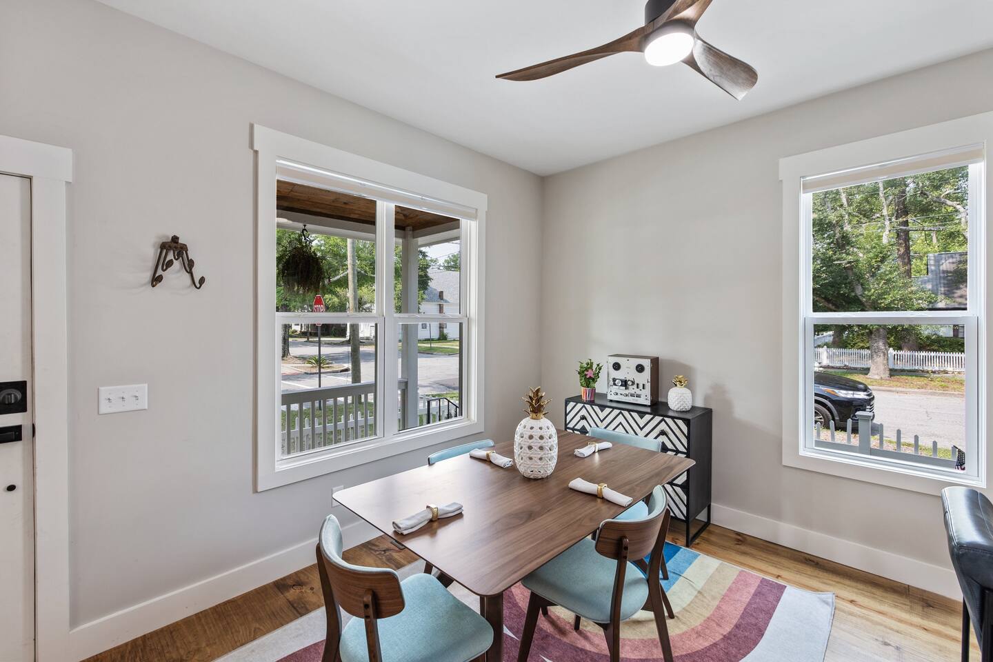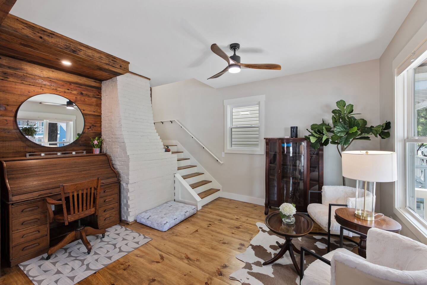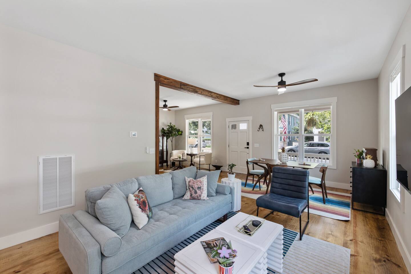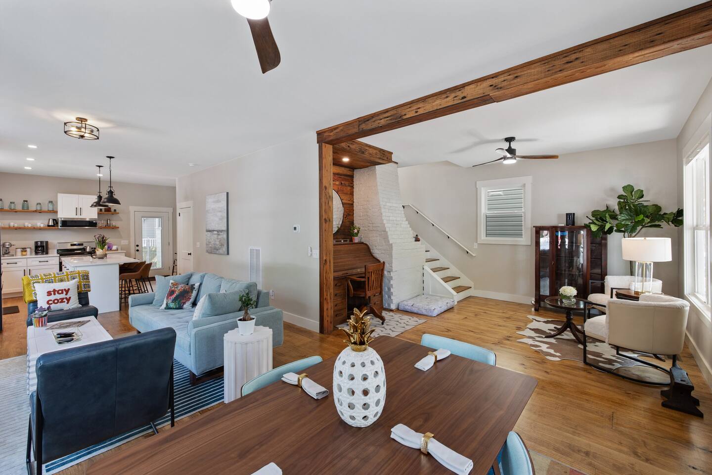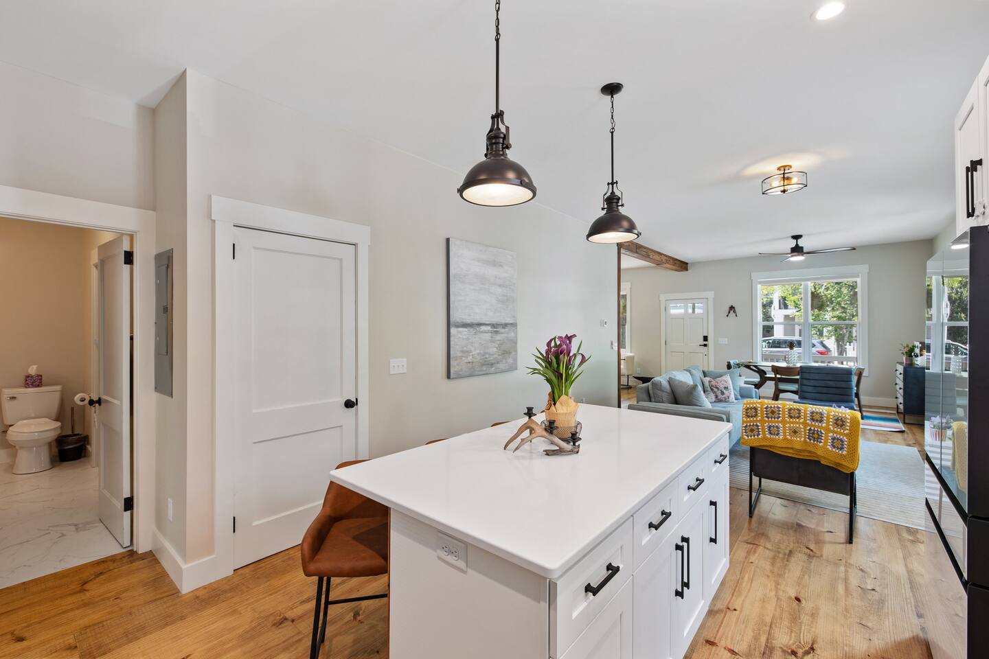 Stay in the heart of it all. This stylish two-story home combines downtown convenience with peaceful comfort โ just blocks from the Riverfront, restaurants, breweries, galleries, and the best of local nightlife. ๐ Sleep in Comfort 1 King suite with private bathroom 1 Queen suite with private bathroom Perfect for couples traveling together, business trips, or families who appreciate privacy. ๐ป Work, Relax & Stream Fast Wi-Fi Dedicated work desk Smart TVs for streaming Ideal for remote work, extended stays, and digital nomads. ๐พ Pet-Friendly + Fenced Yard Bring your dogs! Fully fenced yard Safe, private space for pets to enjoy while you relax. Including a bespoke dog house designed after the house. ๐ Easy, Hassle-Free Arrival Private parking Self check-in Luggage drop-off available on request ๐ฝ Cook & Gather Full kitchen stocked with essentials Coffee bar ๐ What Guests Love Most Quiet Church St. neighborhood A perfect blend of modern style + historic charm Walkable to dining, shopping, and entertainment Close to the Riverfront, parks, and local attractions Perfect For: Weekend getaways Work trips & remote stays Couples traveling together Guests with pets Long-term stays