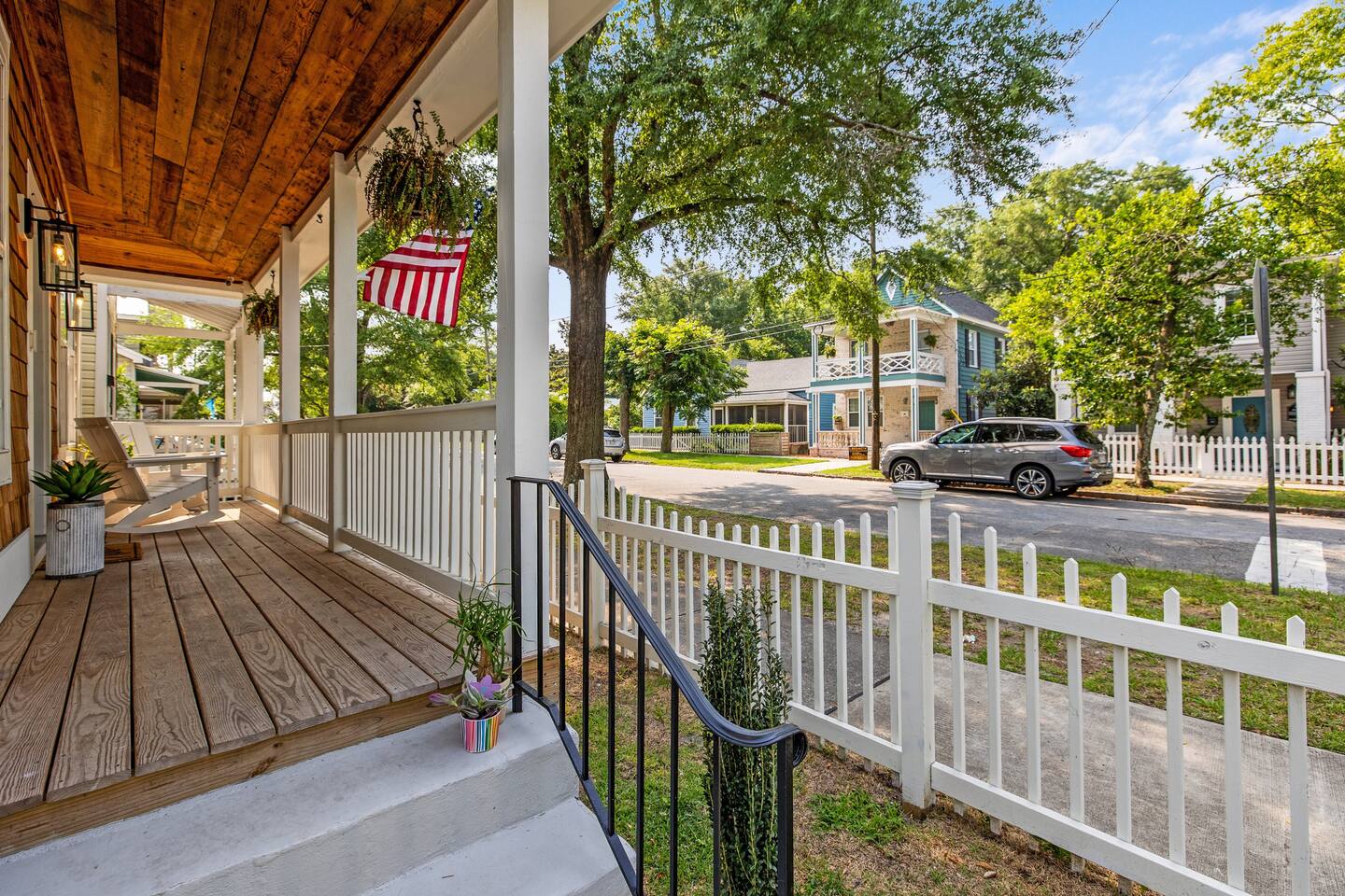 Uber, Lyft, Taxi, or drive. Thereโs a space within the fenced yard and plenty of free street parking all around. Walk one block to find food, restaurants, shops. A few blocks further will take you to the riverfront. Rent bikes or enjoy the historic neighborhoods as you walk. 8 miles to Wrightsville Beach.