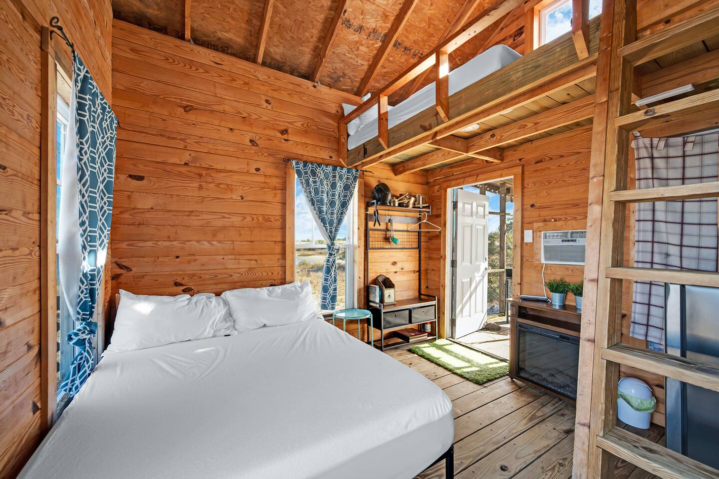 FEATURED ON: HGTV and TrentTheTraveler (2 Days ALONE on an Island) Glamp in a Tiny Cabin! Swansboro is named in “The 25 coolest towns in America to visit in 2021” Matador Network No boat? No problem. We have a licensed captain that will get you to and from the island included in your booking. Th entire island with Tiny House Cabin Completely private with 360 degrees of shoreline 40' Private Dock Cabin 4 kayaks 1 Queen Bed 1 Double Bed in Loft Charcoal BBQ Fire pit Generator AC/Heat