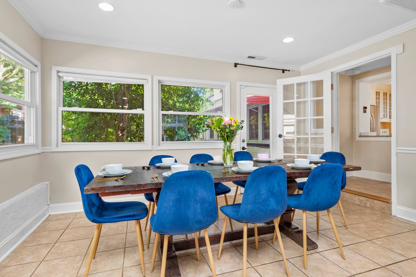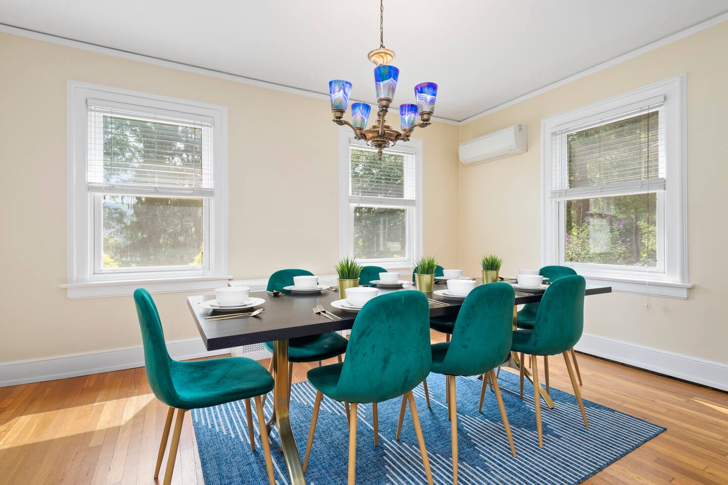 Welcome to your stunning 8-bedroom retreat just minutes from downtown Asheville. This exquisite Airbnb is the perfect destination for you and your fellow travelers if you're seeking an unforgettable stay in the heart of the Blue Ridge Mountains and Asheville activities. As you step inside, you'll be greeted by a spacious and well appointed interior, blending contemporary style with 1920s grandeur. The living area boasts high ceilings, plush furnishings, and a cozy fireplace, creating a warm and inviting atmosphere. The large windows allow ample natural light to flood the room, providing breathtaking views of the surrounding mountain landscape. The two fully equipped gourmet kitchens are a culinary enthusiast's dream, featuring modern appliances, granite countertops, and ample space for preparing delicious meals. Adjacent to the kitchen, three stylish dining area awaits, providing ample seating for everyone to gather and enjoy shared meals or engage in lively conversations. Each of the eight bedrooms has been thoughtfully furnished with comfort in mind. Soft linens, plush mattresses, and tasteful decor create an oasis of relaxation. Some rooms include private balconies, where you can sip your morning coffee while soaking in the serene beauty of the mountains. Asheville, known for its vibrant arts scene, rich history, and stunning natural beauty, offers an array of activities to suit every interest. Explore the nearby Biltmore Estate, take a scenic hike along the Blue Ridge Parkway, or indulge in the city's renowned craft breweries and local cuisine. After a day of exploration, return to the comfort of your private oasis, where you can gather in large solarium to watch the sunset over the mountains or enjoy a cozy bonfire under the starry night sky. Whether you're seeking adventure or relaxation, this 8 bedroom Airbnb in Asheville is the epitome of historic grandeur and comfort. Book your stay today and create lifelong memories in this enchanting mountain retreat.