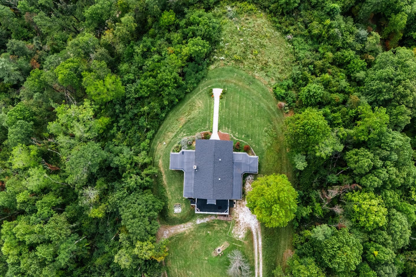 You are minutes (10 - 15) from Asheville, Sierra Nevada Brewery, The Airport, and many other amenities. HOWEVER, as there is no land developed around the property you are in a natural environment. There are bears and other wildlife that you may encounter. We will provide information to make sure you're wildlife wise but please remember that you're in a wilderness area tucked right in the middle of a metro area. Main Floor 2 King Bedrooms (hallway access to very large full bath - Soaking tub and step in shower) 1 Queen Bedroom (ensuite half bath) 2 Twin over Twin beds in the Theater Room Second Floor 3 King Bedrooms (1 king bedroom is the primary, with ensuite bathroom - Jetted soaking tub and step in shower with bench) 1 Futon in a king bedroom (for added space) - This is the bedroom with a king bed and a dedicated work station 2 Full beds (bunk bed) 1 Full Bathroom accessible by the bunk bed room or hallway Welcome to our luxurious Airbnb retreat in the heart of the blue ridge mountains. Nestled on a sprawling 12-acre property, this exceptional vacation rental offers unparalleled mountain views that will take your breath away. With 8 spacious bedrooms, this home is perfect for accommodating large groups or multiple families seeking a memorable getaway. Each bedroom is thoughtfully designed and furnished to ensure your utmost comfort, providing a restful haven after a day of exploring the enchanting surrounding landscapes. As you step outside, you'll be greeted by the grandeur of the Blue Ridge Mountains stretching across the horizon. The 12-acre estate offers ample opportunities for nature lovers and outdoor enthusiasts to explore, from hiking and picnicking to simply basking in the tranquility of the scenic surroundings. The ever-changing mountain vistas provide a captivating backdrop for memorable moments with loved ones. Back inside, the living spaces exude a perfect blend of sophistication and cozy warmth. The common areas are adorned with tasteful decor and feature large windows that frame the stunning mountain panoramas. You can lounge by the fireplace, gather around the dining table for delightful meals, or whip up your favorite recipes in the fully equipped kitchen with large groups in mind. We also have private chef and catering recommendations available. Whether you're seeking adventure, relaxation, or a bit of both, this Airbnb has it all. Immerse yourself in the beauty of the mountains, unwind in the theater room, and create cherished memories with your loved ones in this extraordinary mountain retreat. Book your stay now for an unforgettable experience that will leave you yearning to return. This magnificent property sits at the end of a 1.5 mile private driveway. We regularly have delivery vehicles, front wheel drive sedans, and just about any vehicle you can imagine come up the drive. While it is gravel, it is a gradual incline and pretty easy going.