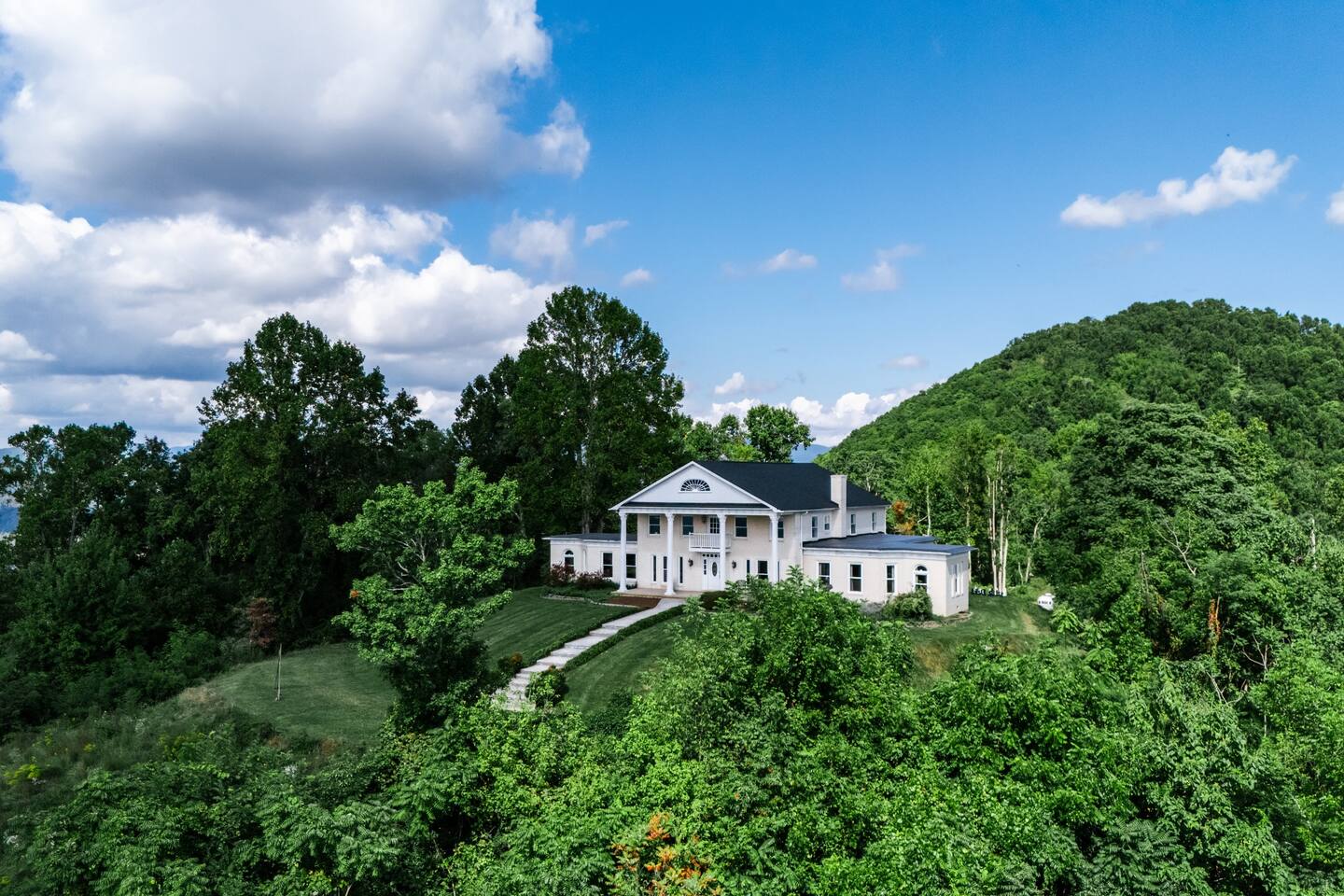 Experience your own 12-acre mountain estate. Spread out in 8 bedrooms (5 king). Pool-table game room Chef-ready kitchen Panoramic Blue Ridge views Minutes to Biltmore & downtown Asheville yet peacefully secluded. Perfect for any get away—ample parking & fast Wi-Fi The views are unmatched