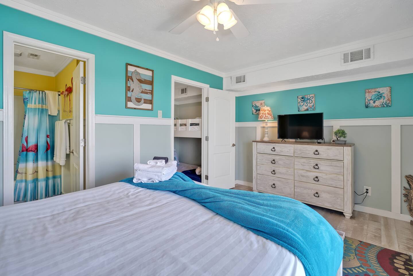 Your beach home is waiting! Come enjoy your much deserved time at this adorable condo on the first row behind beach front. 1 Queen Bed 2 Twin (bunk bed) 1 Queen Sofa Bed Fully Equipped Kitchen Washer & Dryer 2 Balconies (one off living room and one off the master suite) 2 Smart TVs (Bring your binge!) Highspeed WiFi Spa Quality Shampoo, Conditioner, and body wash 1 Unforgettable Stay : )
