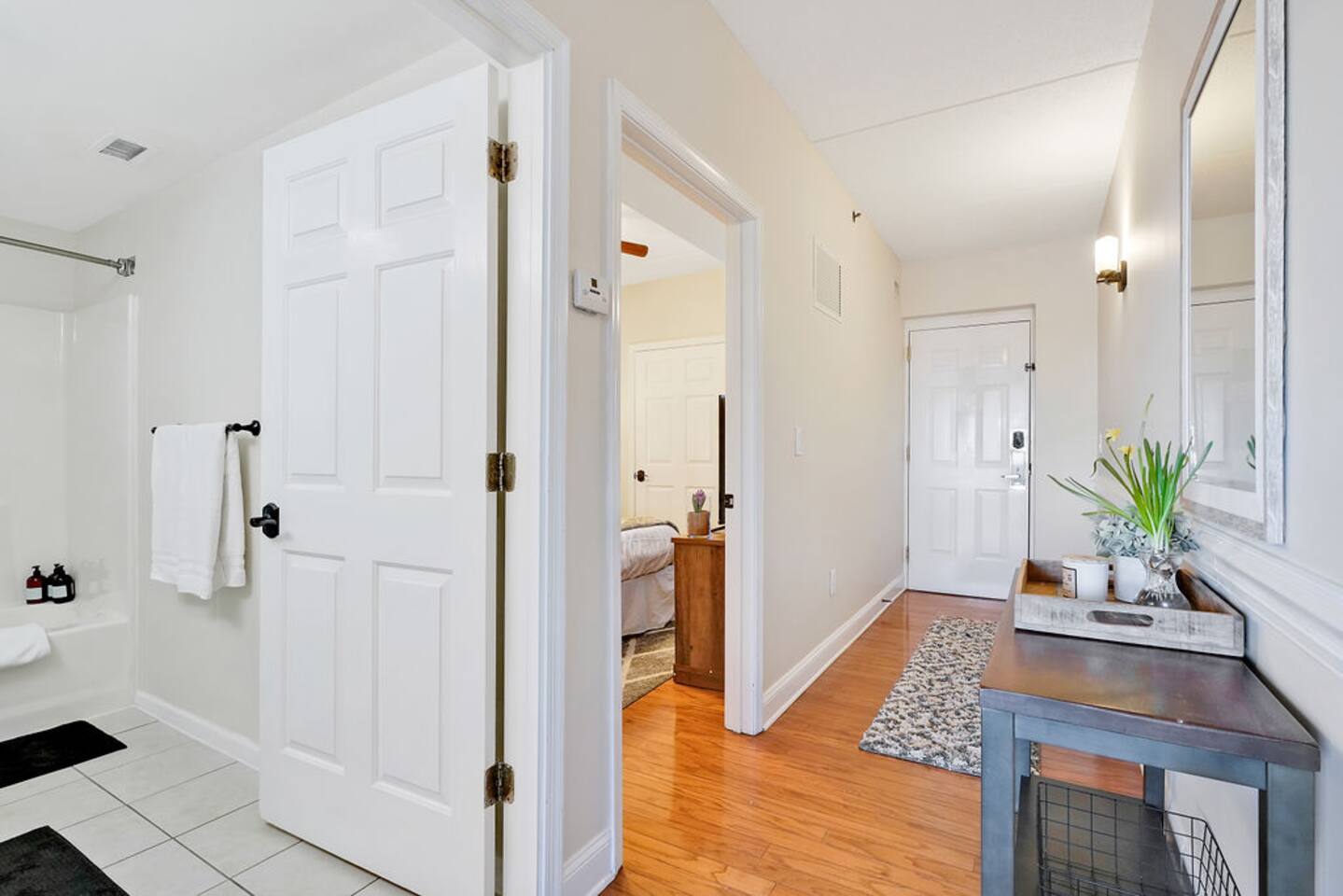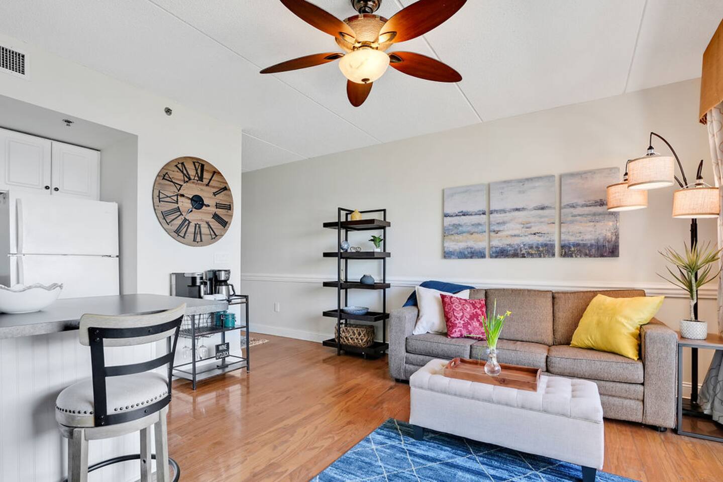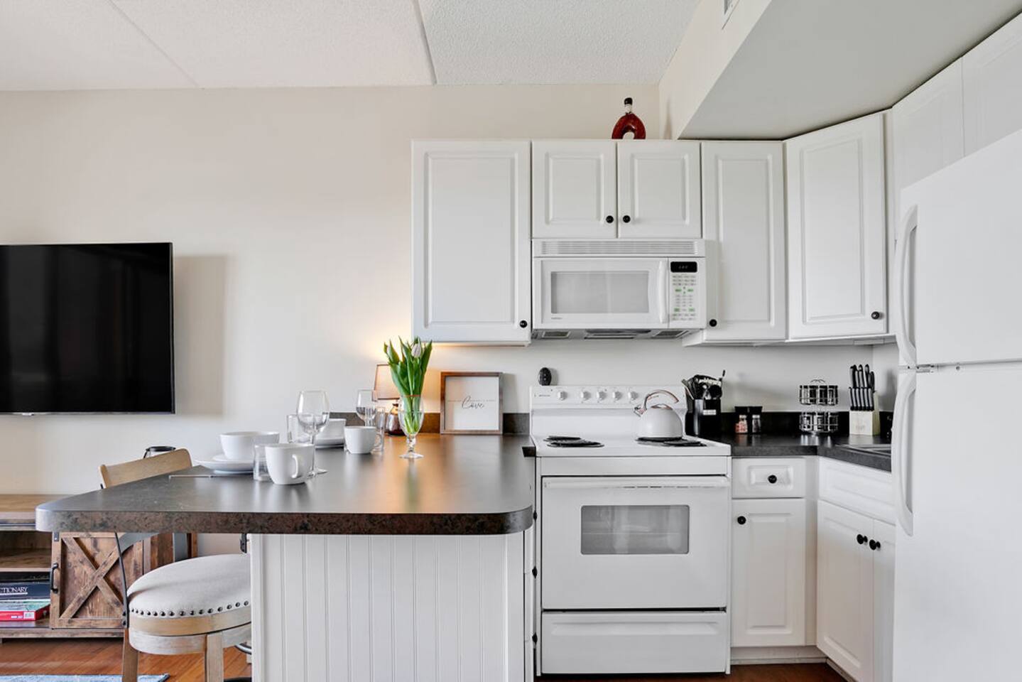 The most walkable location in the heart of downtown Wilmington awaits! Your 1BR condo offers an incredible home base within a short stroll of shops, restaurants, pubs, local attractions, and vibrant nightlife. Spend fun-filled days exploring, then return home to relax on your balcony. Outfitted with alfresco dining, this private outdoor space boasts views of the Cape Fear River, Memorial Bridge, and Battleship North Carolina. LIVING AREA Unwind into vacation mode in the living area. Stretch out on the sofa bed and stream favorite shows on the smart TV. Sliding glass doors lead to the balcony and flood the space with natural light. KITCHEN & DINING Prepare delicious meals in the newly remodeled kitchen. Thoughtful extras include a coffee/wine cart with a Keurig, an electric tea kettle, and wine glasses. The kitchen bar offers two seats. BED & BATH This condo sleeps four guests between the queen sofa bed in the living room and a bedroom. (Theres also a queen air mattress) The bedroom holds a king bed and smart TV, while the guest bathroom has a tub/shower combination. OUTDOOR AREA & AMENITIES The private covered balcony offers a table for two - enjoy dining alfresco amid the river views! EXTRA PERKS & MORE DETAILS Complimentary Wi-Fi and a private/washer dryer are provided. Please note that there is no on-site parking at this building. There is a paid parking lot adjacent to the building and a paid parking deck 2 blocks away. Metered parking is also available in the area. (Street parking is free on Sunday.) This condo is located on the third floor. Elevators are available. LOCATION Located just off the Cape Fear River in downtown Wilmington, this condo has a prime location for exploring the best of the city on foot. Wrightsville Beach is an easy 20-minute drive. Local attractions include the Burgwin-Wright Museum and Gardens, Thalian Hall, the Brooklyn Arts Center, the Bellamy Mansion Museum, and the Cape Fear Museum of History and Science. This rental is located on floor 3. Parking Notes: We provide a parking pass for the new parking garage 1 block north across from The Hotel Ballast. Additional paid parking can be found at the lot adjacent to the building, a paid parking deck 2 blocks away on 2nd Street directly up the hill, and another on the corner of 2nd and Market ($10 per 24 hours). Metered parking ($1.50 per hour) around the building is also available on Princess, Chestnut, Front, and Water streets from 9am to 6:30pm. (Street parking is free on Sundays and overnight.) The River Place next door offers limited inside parking starting at $13/day. Or you can search 'parking downtown Wilmington NC' for more options. You can use the loading area in front of the lobby upon first arriving. We're providing info to help, please check parking rates to verify at the time of your trip. We LOVE our guests. You're the reason we do this and want you to LOVE your stay.