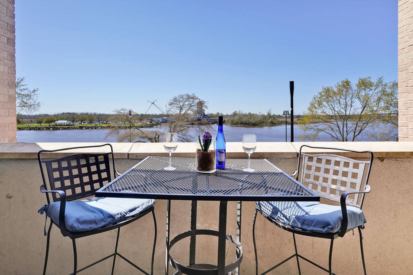 Downtown Wilmington at its best!!! Your condo is located directly on the world famous Cape Fear River overlooking the Battleship. Gorgeous sunsets from the balcony and steps to all the best restaurants, bars, and attractions of downtown Wilmington. Wrightsville Beach is within 15 minutes and Carolina or Kure Beach a bit more.