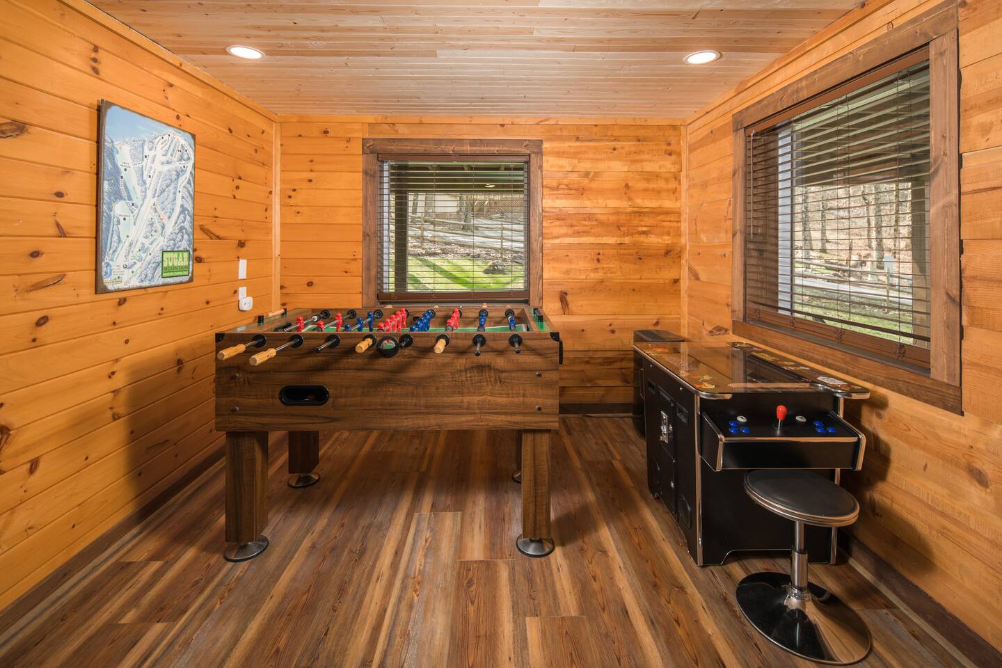 Escape to our private 4-bed Sugar Mountain cabin featuring a soothing hot tub, crackling fire pit and game-room fun. Bedrooms: 2 queen, 1 double, 4 twins – plenty of space for family and friends. Fully equipped kitchen Foosball & Smart TV Minutes to ski slopes, hiking & Blue Ridge sights Unwind on the deck, stargaze from the tub and create mountain memories. Book your stay today!