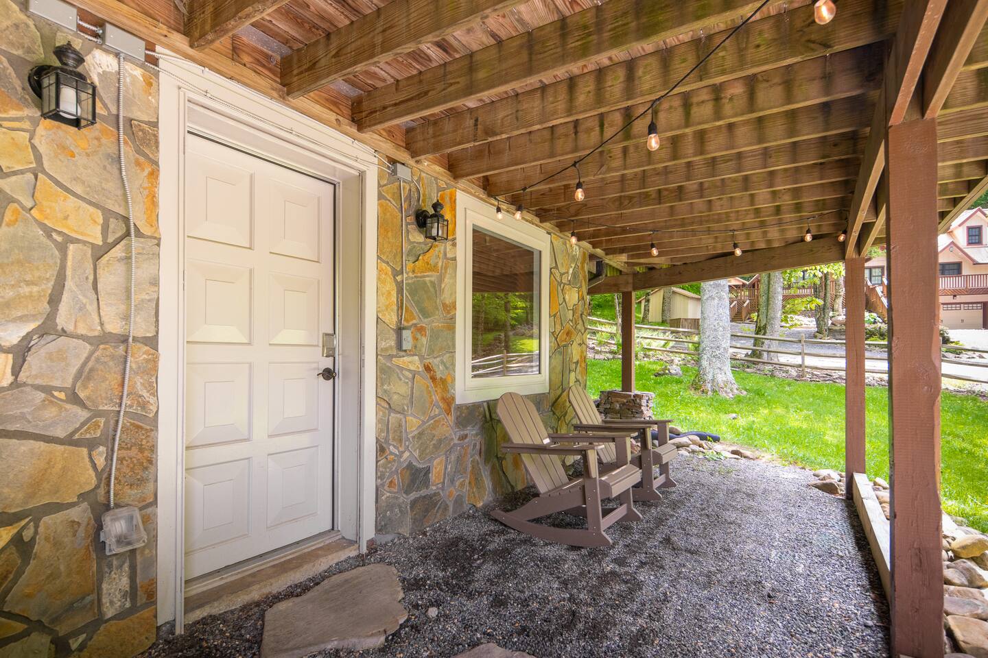 Ring cameras are located at the front door. They record video and audio but are not actively monitored. This is mostly for great bear footage.