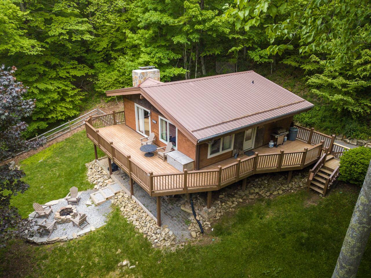 Guests have full access to cabin and their own private hot tub and outdoor fire pit.