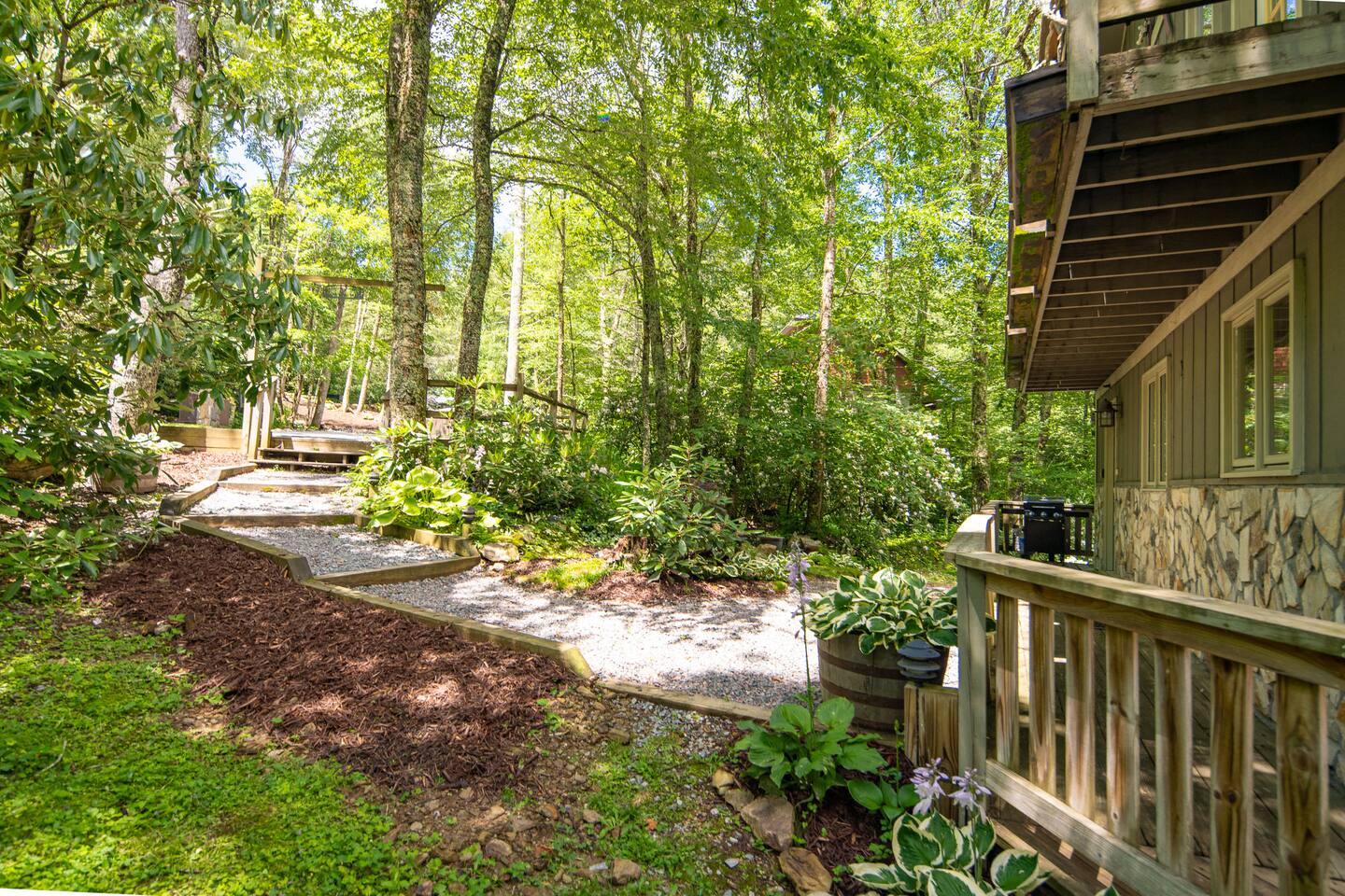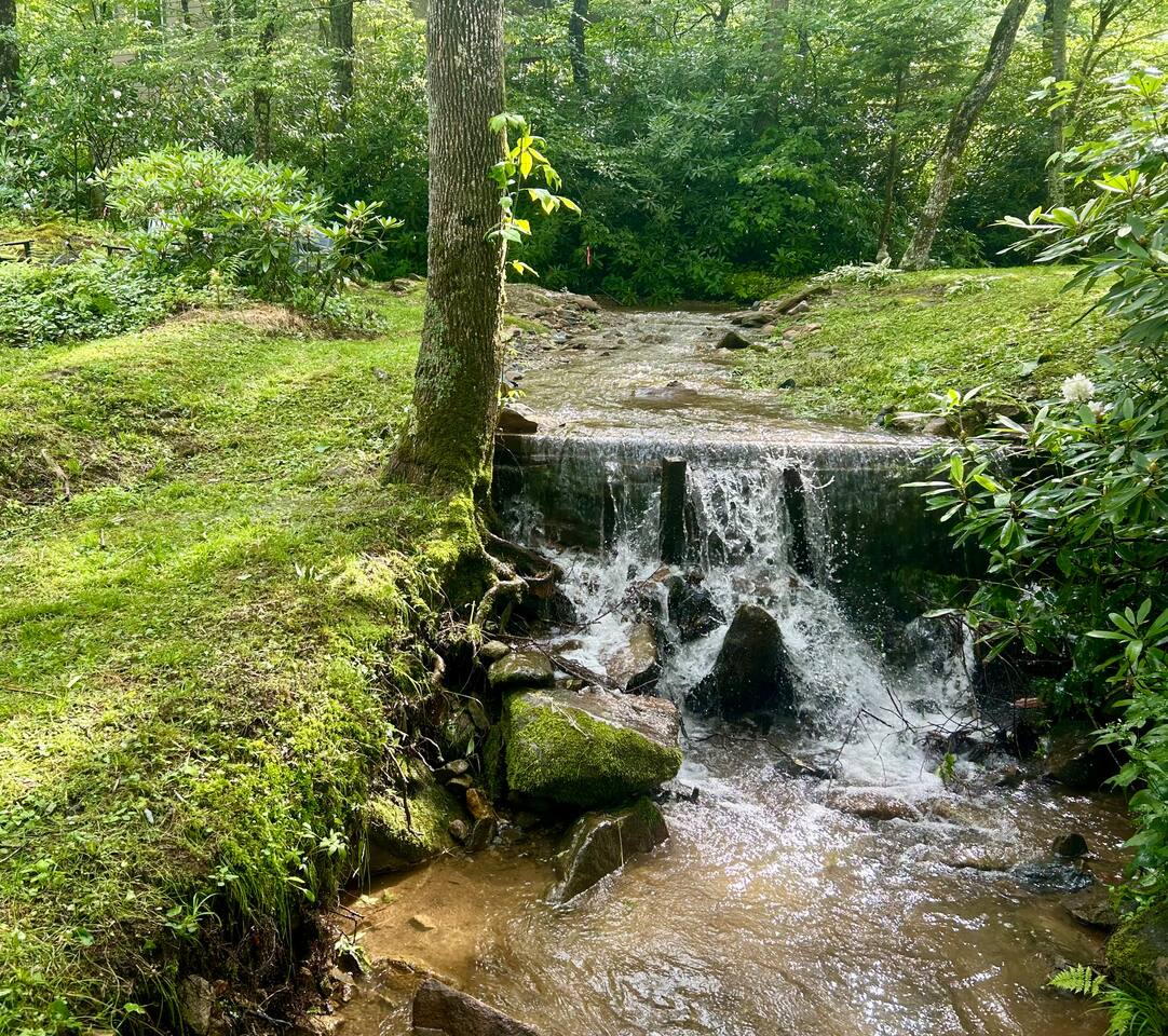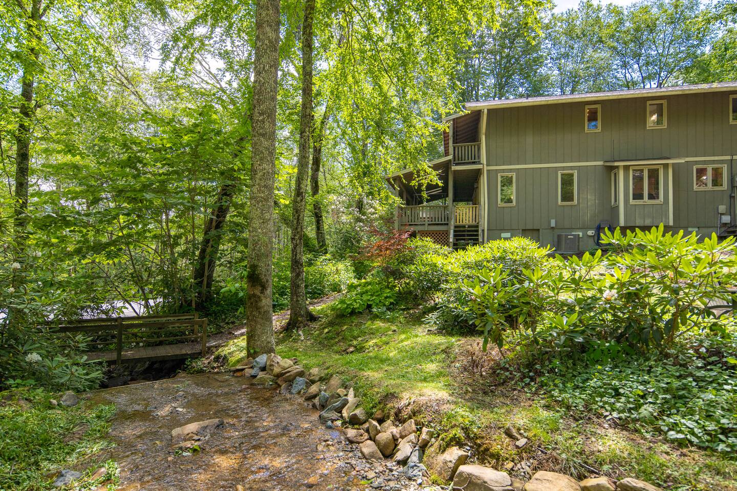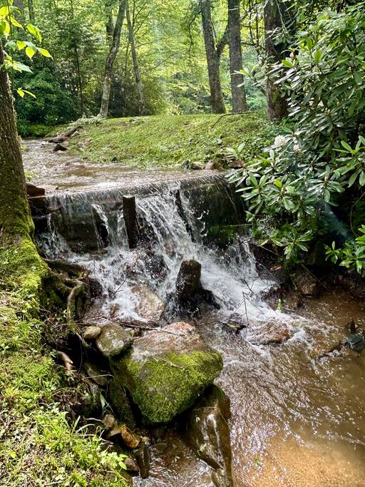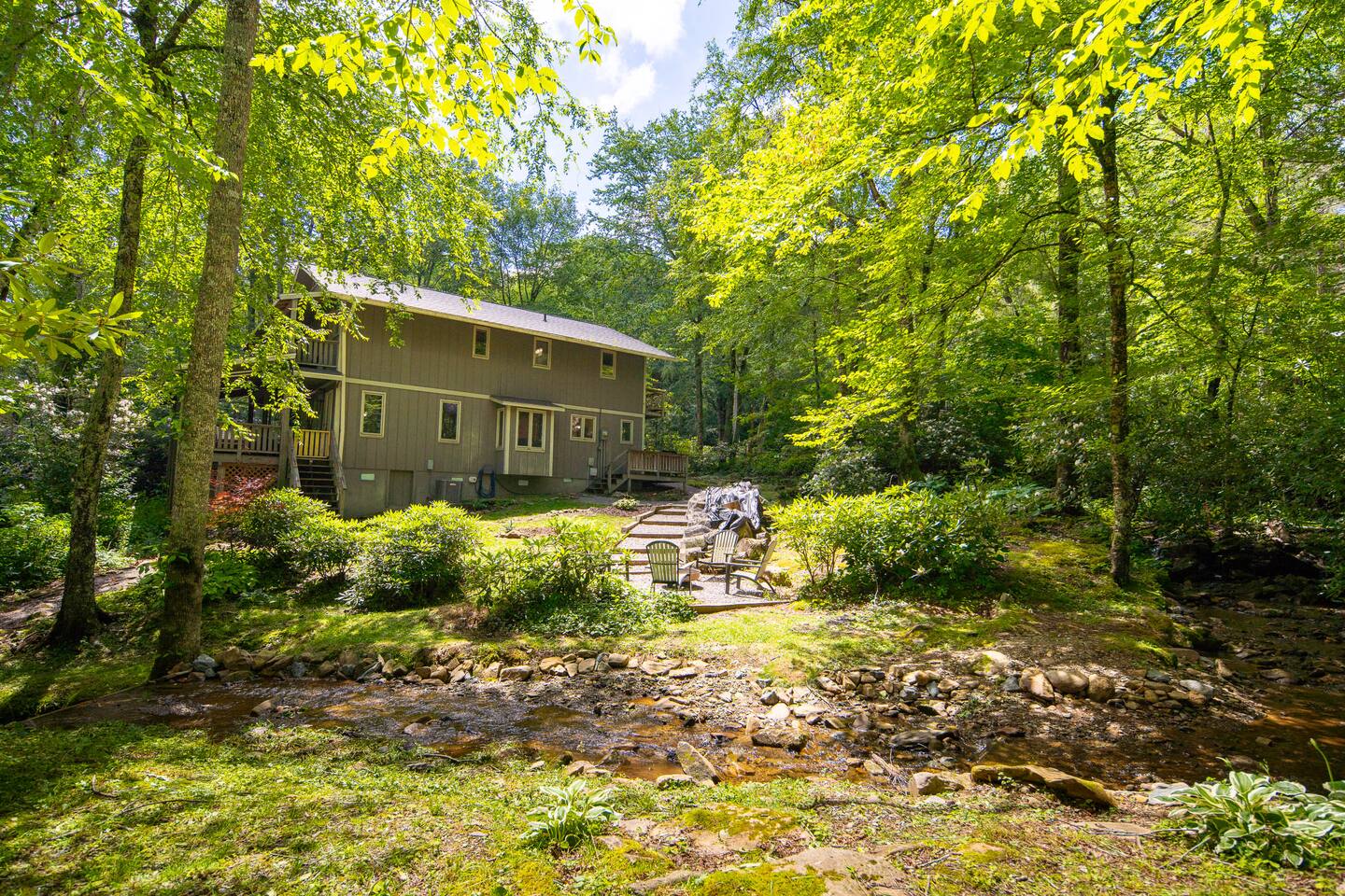 Amazing cabin steps from the resort. Your own year round babbling book and pond accent the property.