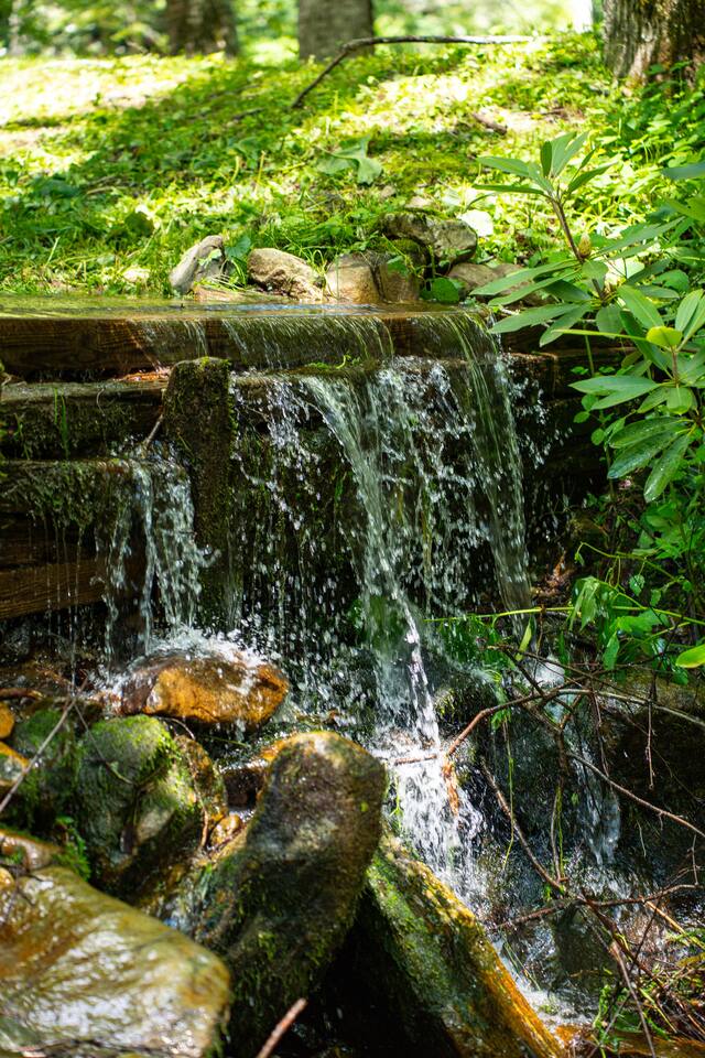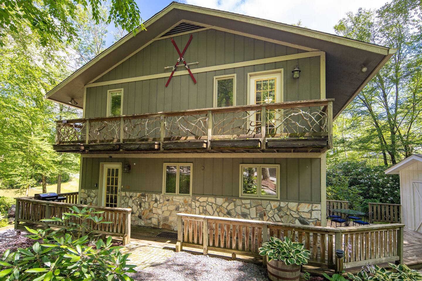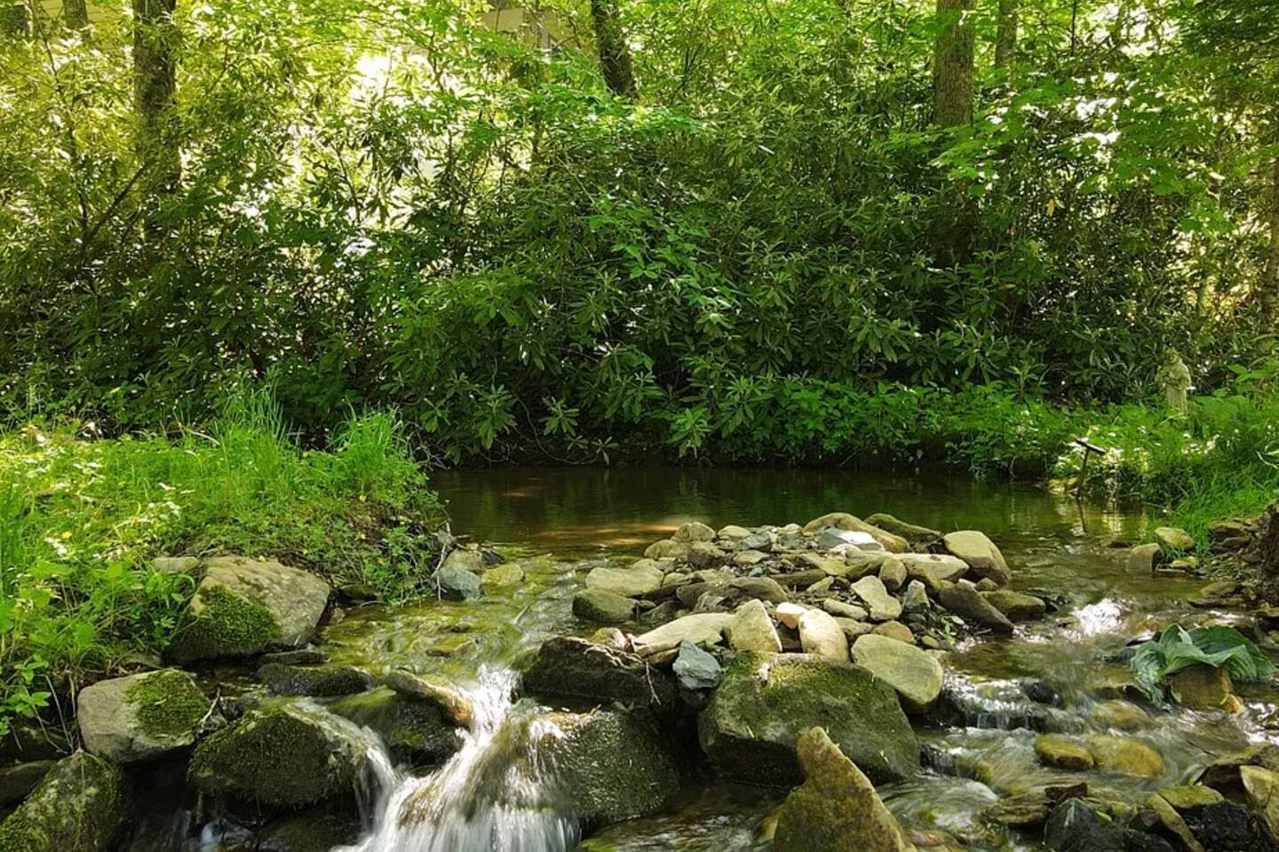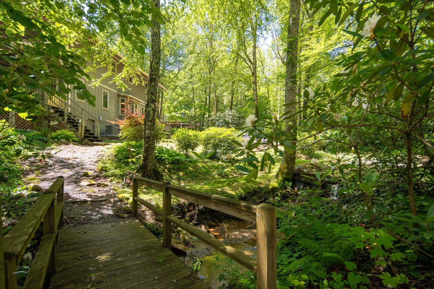 Amazing cabin steps from the resort. Your own year round babbling book and pond accent the property.
