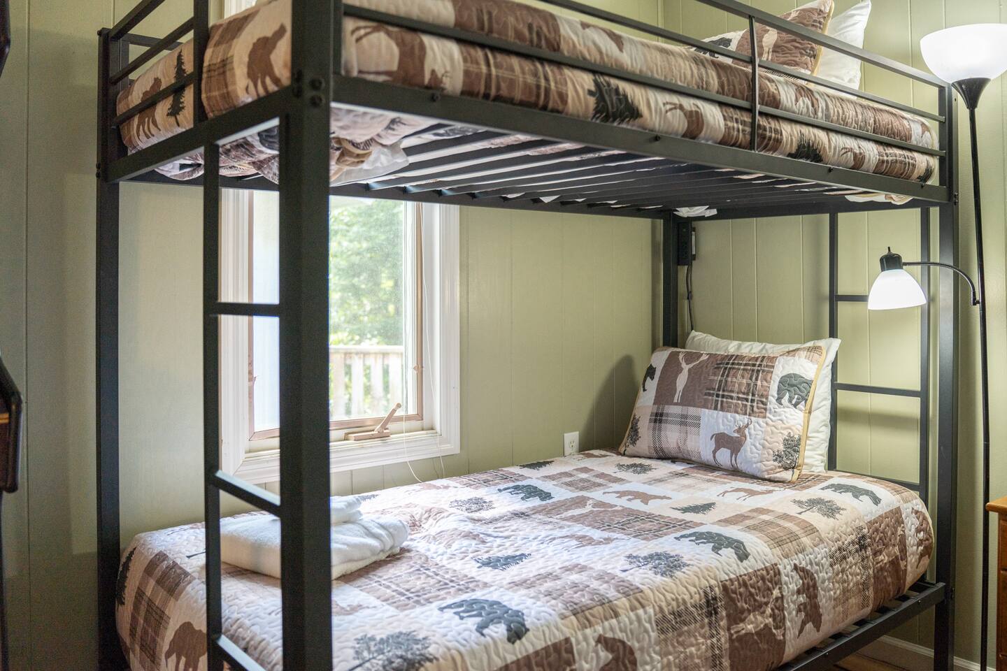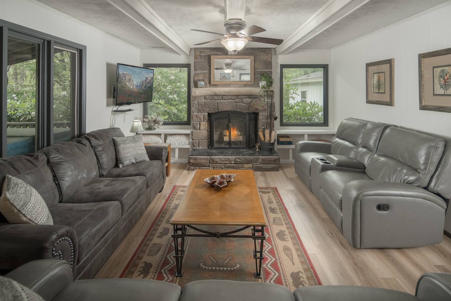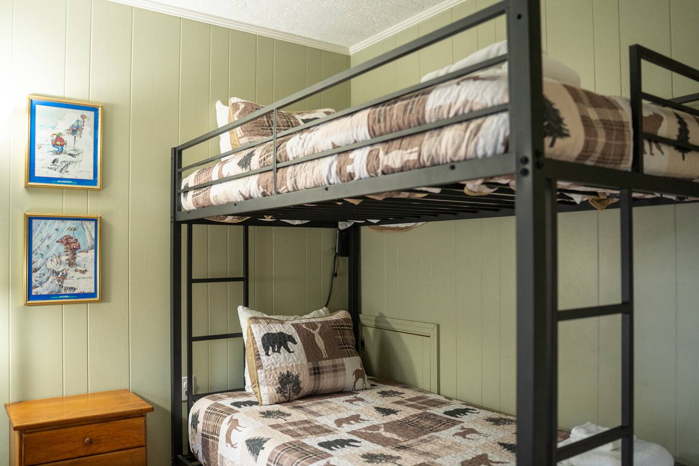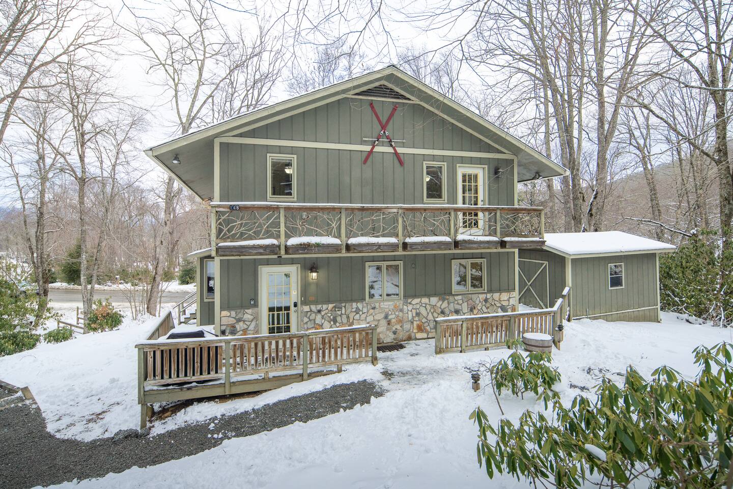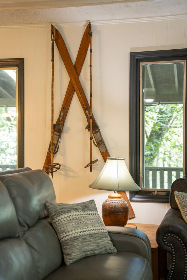 Two-story 5 bedroom chalet nestled in the serene forest next to your very own babbling creek and pond. Walkable to the resort! 2 Wood burning fireplaces 5 Bedroom 3.5 Bathroom 2 King Beds 1 Queen Bed 1 Twin Over Full Bunkbed 2 Twin over Twin Bunkbeds 1 Pullout Couch in family room (Full) A quarter mile to the ski resort on the shuttle line! This the one you've been looking for!