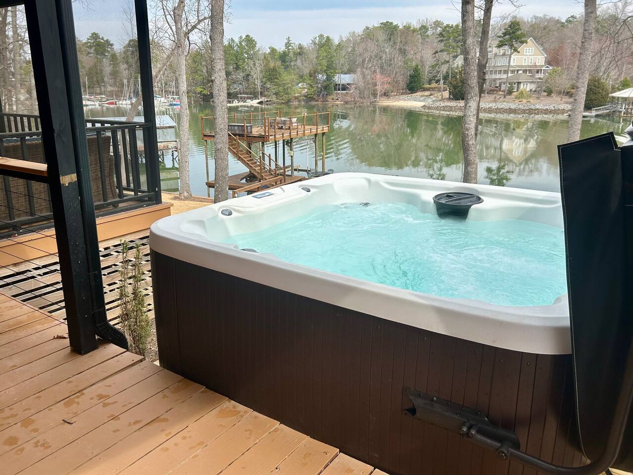 Private Dock & Deck: Spend your days fishing, swimming, or simply soaking up the sun by the water. Hot Tub Bliss: Unwind under the stars in your own private hot tub. Outdoor BBQ: Grill up your favorite meals on the BBQ while enjoying panoramic lakefront scenery. Spacious Living: Modern amenities, cozy furnishings, and plenty of natural light make this home feel like a retreat. Prime Location: Close to local attractions, hiking trails, and dining options. Whether you're here to kayak at sunrise, sip coffee on the deck, or enjoy evenings by the hot tub, this lakefront gem offers everything you need for a memorable stay. Why Guests Love It ⭐ Perfect for a romantic weekend, family vacation, or group getaway ⭐ Pet-friendly (upon request) ⭐ Fully equipped kitchen, Wi-Fi, and free parking Book your stay today and discover the perfect blend of comfort and adventure! 🌊✨
